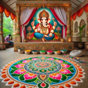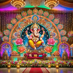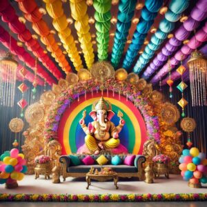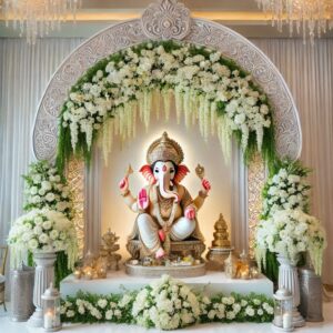 Divine Stage (Makar) 21 – Designs for Ganesh Chaturthi / Ganesh Jayanti Bliss! 6 January 20256 January 2025 bnb99blogger@gmail.com AllGallery Item Rose ThemeUse rose pital and red decorations for an enchanting theme. Peacock ThmeUse peacock feathers and blue-green decorations for an enchanting theme. Eco-Ganpati Garden:Decorate with potted plants and flowers to create a natural environment. Cultural TributesShowcase elements from different Indian states, such as Warli art or Kathakali masks. Colorful ThemeLights & Flowers Hand-Painted RangoliDesign a colorful rangoli in front of the idol using eco-friendly colors. Rainbow ColorsUse multicolored paper chains, balloons, or streamers for a joyful setting. White and GreenKeep it simple yet elegant with white flowers and green foliage. Golden and RedHighlight grandeur with a mix of gold and red fabrics and props. Themed BackdropsCelestial” (stars and moons) or “Underwater” (sea creatures) for unique setups. Origami or Paper ArtUse colorful paper crafts to add a modern touch. Eco-Ganpati GardenDecorate with potted plants and flowers to create a natural environment. Natural ElementsDecorate with twigs, dried flowers, bamboo, and coconut shells Clay Pots and Diyas Arrange colorful clay pots and light diyas around the idol for a traditional vibe. Banana LeavesDecorate the area with banana leaves for an authentic, eco-friendly touch. Floral DecorationUse marigold, roses, and jasmine garlands to adorn the Ganesha idol. Create a backdrop with fresh flowers. Royal EleganceAdorn with velvet fabrics, gold accents, and regal props to create a majestic setting. Vintage BeautyDecorate with antique items, lace, and soft pastels for a timeless, elegant look. Garden Paradise Create a lush, green setting with an abundance of foliage, fairy lights, and flower arrangements. Royal Palace ThemeTransform the stage into a miniature royal palace with intricate arches, pillars, and chandeliers. Use rich fabrics, golden accents, and grand props. Swarovski Crystal DecorAdorn the stage with sparkling Swarovski crystals and shimmering fabrics to add a touch of opulence and glamour. Related posts:Sustainable Ganesh Chaturthi: A Guide to Choosing Eco-Friendly Decoration Materials.DecorationTop 10 Ganesh Mandap Decoration Themes for 2025 Inspired by India’s GrowthDecorationGreen Ganesh Chaturthi: Practical Tips for a Sustainable CelebrationDecoration Tagged with Ganesh Makar Stage Decoration Ideas Decoration